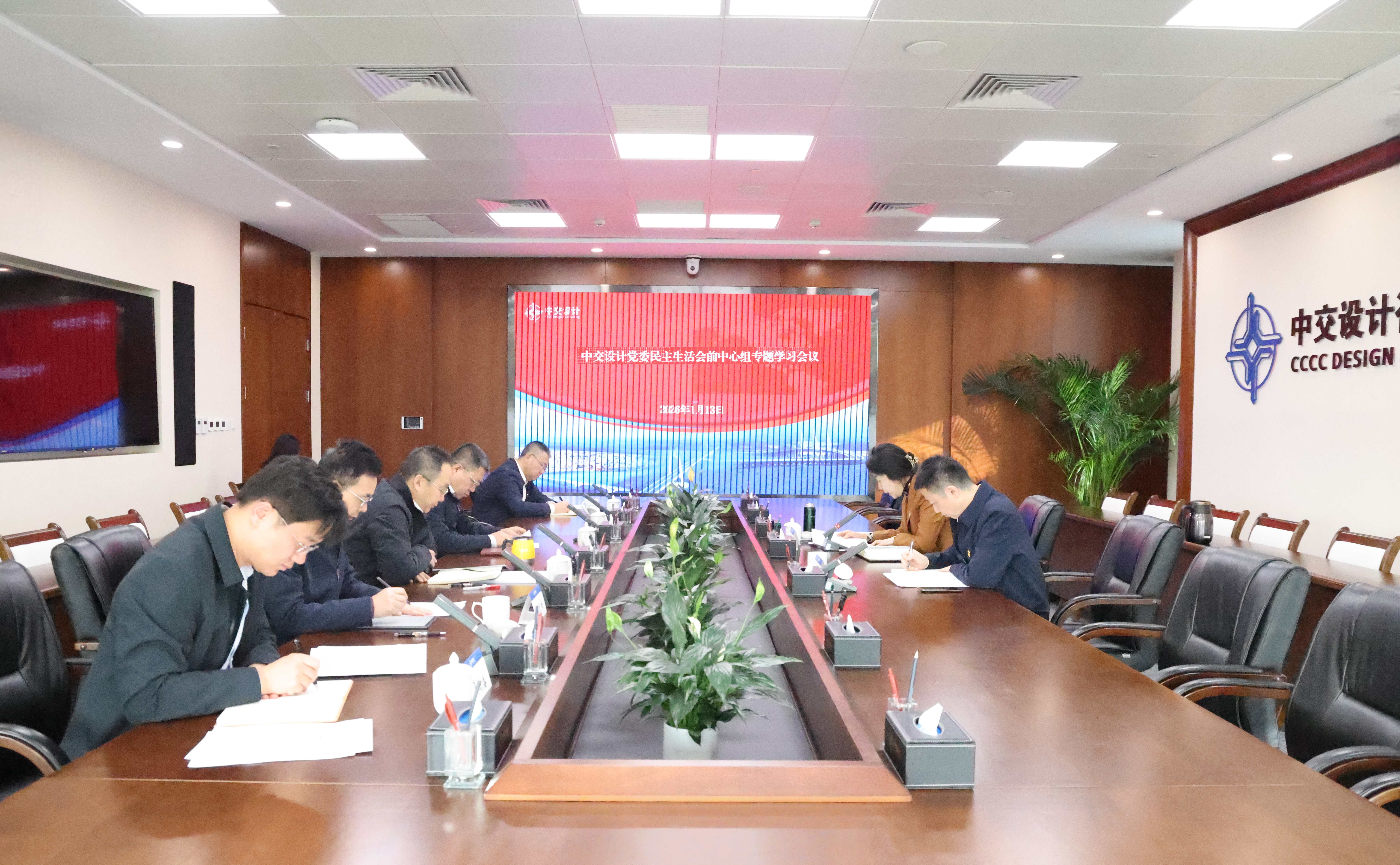 1月13日,中交设计党委召开本年度民主生活会前中心组专题学习会议,公司党委书记、董事长崔玉萍主持会议并讲话,领导班子成员参加会议。